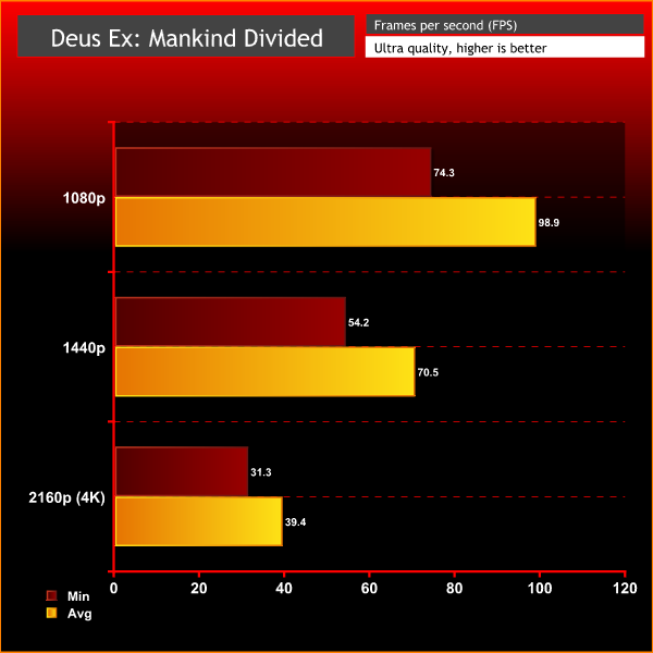 It ran through Deus Ex, Tomb Raider and Witcher 3 with 4K minimums beyond 30fps, and it got beyond 60fps in two of those games. It only struggled a little in Middle Earth: Shadow of War, but its 27fps minimum was bolstered by a 51fps average – so you’re unlikely to see a lot of slowdown here.