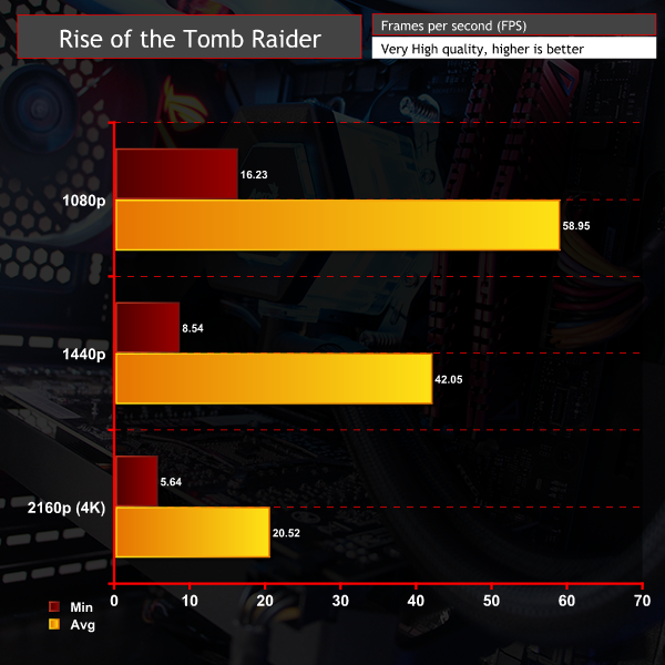In Tomb Raider’s Very High benchmark at 1080p, for instance, the Falcon system averaged 58.9fps. That’s a good result that ensures games are playable, but it’s a long way behind the Overclockers and CyberPower machines, which returned averages of 74.7fps and 79fps.