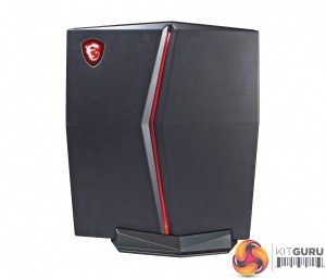 MSI has paired the Vortex’s solid design with a surprising amount of versatility. The system includes a 110mm-wide stand for vertical use, and rubber feet allow the Vortex to be stowed beneath a TV. The rear has a 100mm VESA mount, so the G25 can even be attached to the rear of a monitor – and completely out of sight.