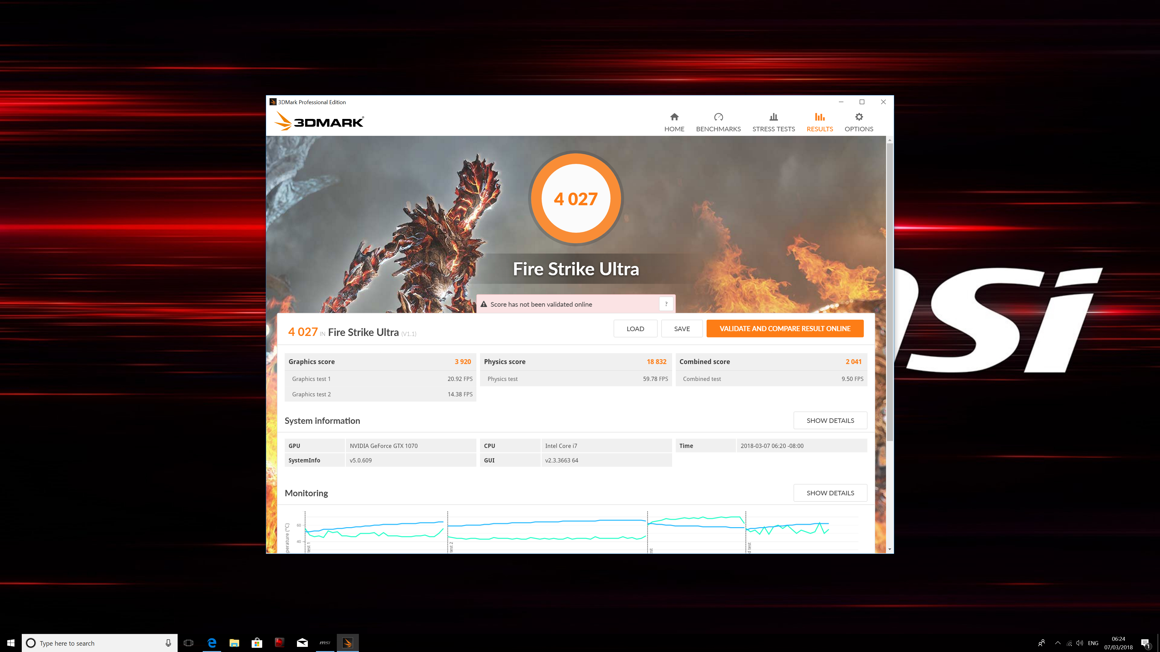 The solid overclock applied to this machine’s GTX 1070 didn’t seem to provide much benefit compared to the MSI Trident rig – it was faster in Fire Strike, but a little slower in the Extreme and Ultra tests.