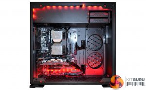 The red lighting lends the dark interior an attractive glow, but that’s it for extras. You don’t get a fan controller or lighting customisation on the machine itself. Build quality on the inside is sometimes a little iffy, too: the PCI blankers and the bottom panel and dust filter are both a little flimsy.