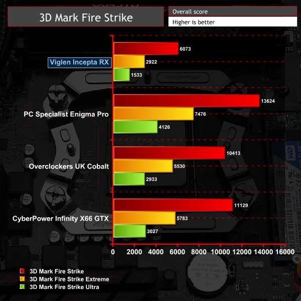 For this test, we ran the Viglen Incepta Professional RX through Time Spy, Fire Strike and Fire Strike Extreme. We have listed results for the overall score, the CPU only score, the GPU-only score and physics.