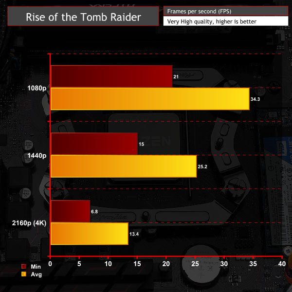 Tomb Raider returned similar results. At 1080p and with Very High settings chosen the Viglen averaged 34fps, but its minimum dipped to 21fps. Dropping down to less demanding graphics settings will solve that problem.