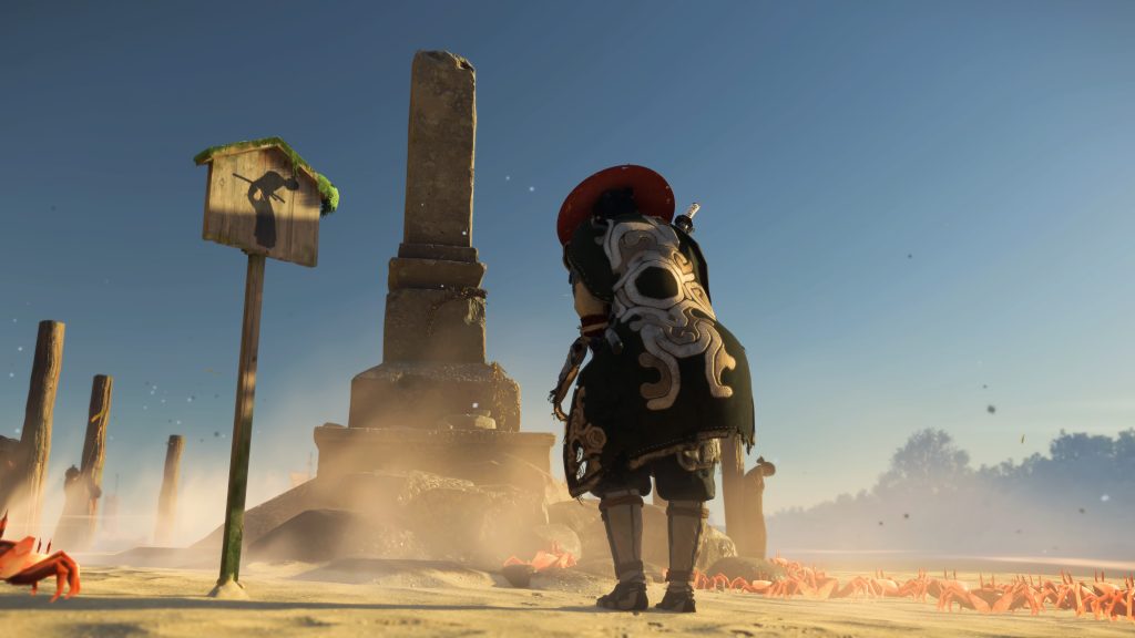 The way in which the game uses particles to bring attention to points of interest from afar not only helps in furthering the beauty of the game, but also removes any unnecessary UI distractions, instead choosing to remain committed to a sense of style. This also allows the team to switch up some of the interactable flora’s designs depending on the region you are in without causing any confusion. A Fox den still looks like a fox den, even if the exact tree which the animal presides under is of a different kind.