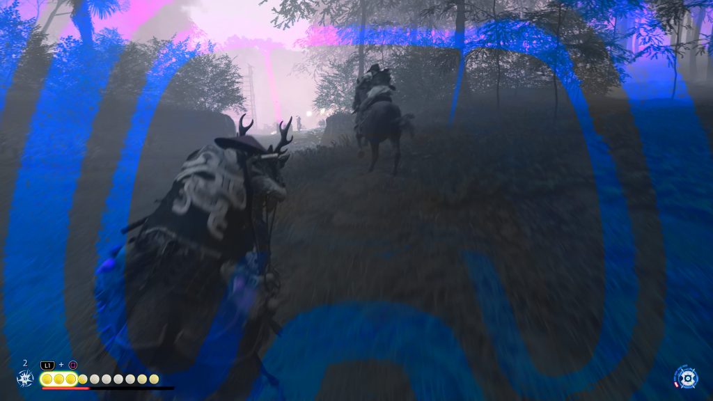 One of the earliest examples occurs near the beginning of the game. The aforementioned guiding wind mechanic is of course created purely as a function of game design, and as such, no one would have looked twice if they had thrown the feature in without any explanation. Ghost of Tsushima does not do this however, instead having it be the spirit of Jin’s father guiding him to where he needs to go.