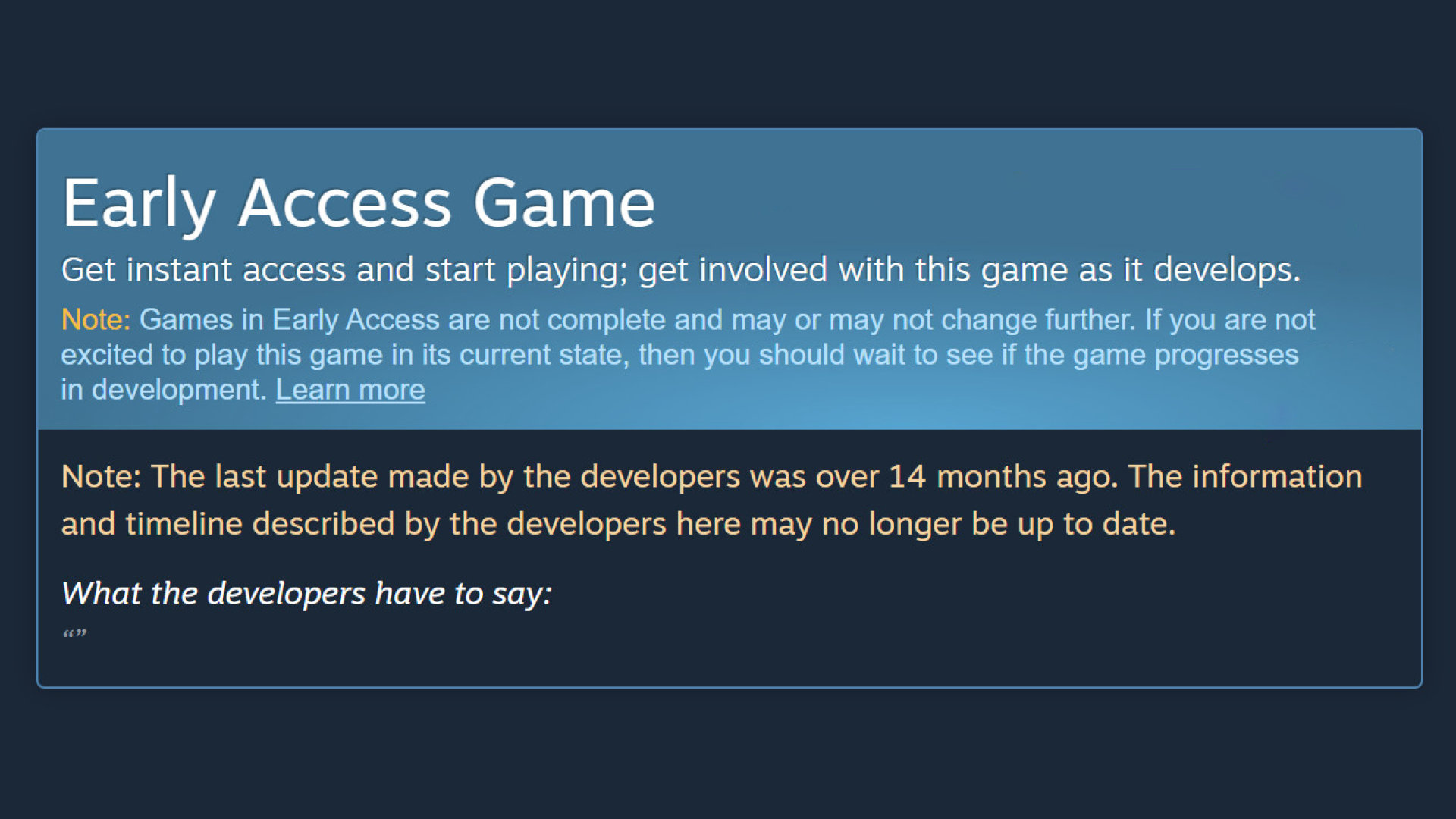 Alongside this, Valve includes any statements made by the developer regarding the lack of updates – assuming they’ve commented on the matter.