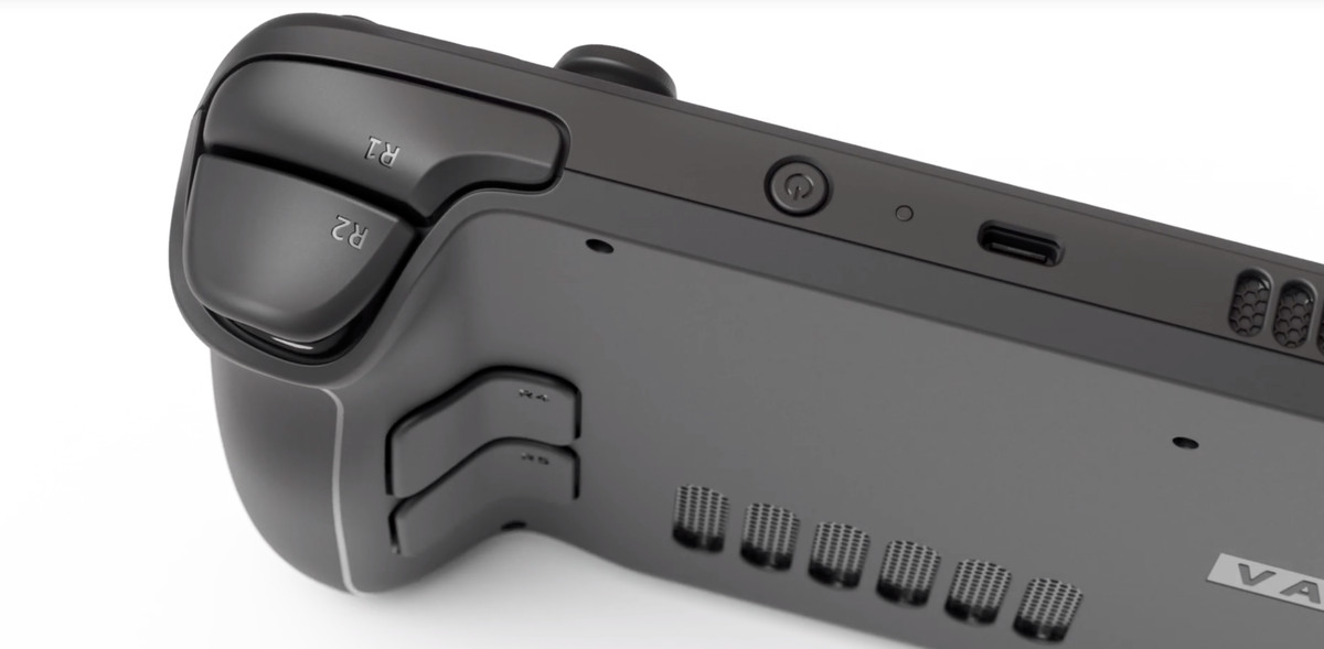 The back of the device offers familiar L1 L2 R1 R2 buttons (but analogue, unlike the Switch), while also coming equipped with four additional buttons, similar to a SCUF gaming controller – giving more button options than a regular console gamepad.