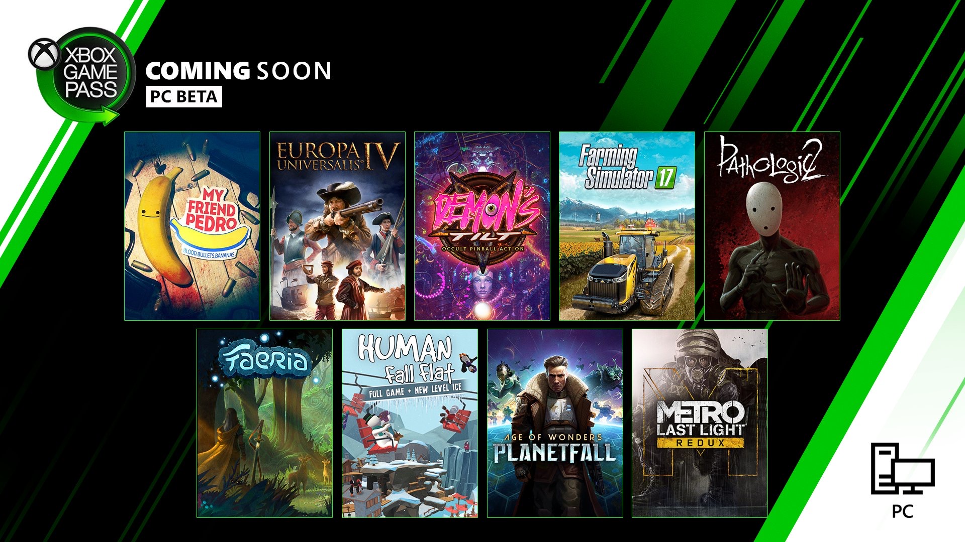 The full list of titles coming to Xbox Game Pass for PC in December are: Age of Wonders: Planetfall; Demon’s Tilt; Europa Universalis IV; Faeria; Farming Simulator 17; Human: Fall Flat; Metro: Last Light Redux; My Friend Pedro; and Pathologic 2.