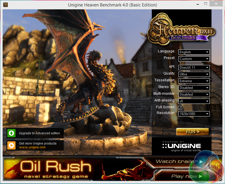 Heaven Benchmark is a DirectX 11 GPU benchmark based on advanced Unigine engine from Unigine Corp. It reveals the enchanting magic of floating islands with a tiny village hidden in the cloudy skies. Interactive mode provides emerging experience of exploring the intricate world of steampunk.