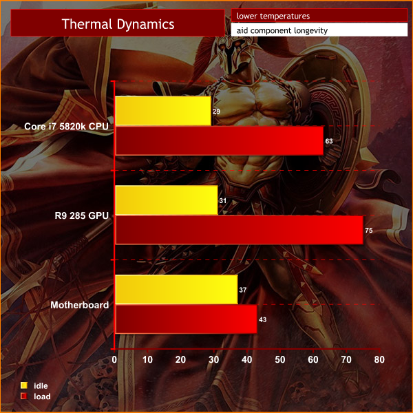 The tests were performed in a controlled air conditioned room with temperatures maintained at a constant 23c – a comfortable environment for the majority of people reading this. Idle temperatures were measured after sitting at the desktop for 30 minutes. Load measurements were acquired by playing Tomb Raider 2014 for 60 minutes and measuring the peak temperature.