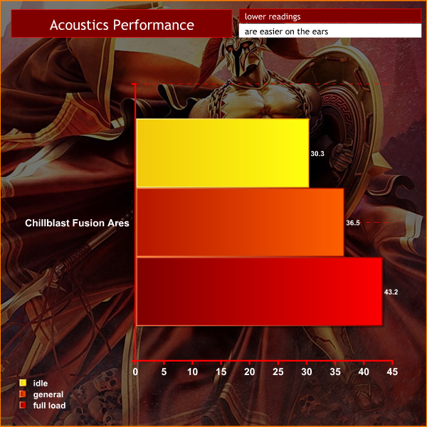 The system is quiet when idle, although the slight hint of a fan spinning is always evident. When gaming, the noise levels rise to 36.5dBa which is clearly audible.