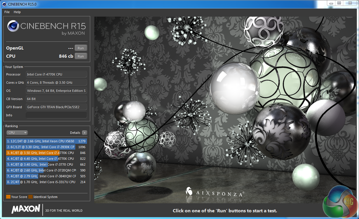 CINEBENCH 15 is a cross-platform testing suite that measures hardware performance and is the de facto standard benchmarking tool for leading companies and trade journals for conducting real-world hardware performance tests. With the new Release 15, systems with up to 256 threads can be tested. CINEBENCH is available for both Windows and OS X and is used by almost all hardware manufacturers and trade journals for comparing CPUs and graphics cards.