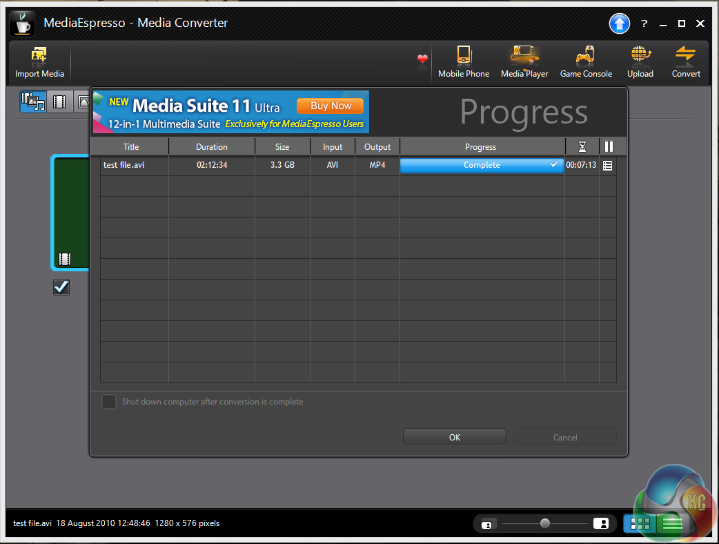 For our testing today we are converting a 4.4GB 720p MKV file (1h:58mins) to Apple Mp4 format for playback on a portable device. This is a common procedure for many people and will give a good indication of system power.