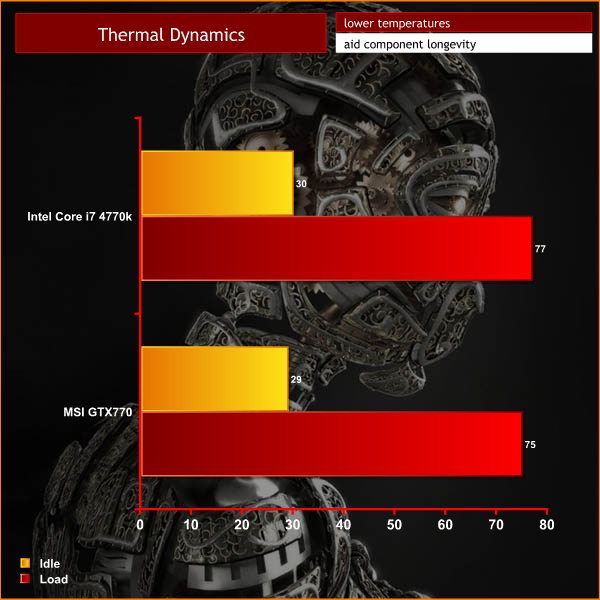 The cooling capabilities of the Aerocool Dead Silence Gaming Cube are excellent. If you have been reading the review from the start, then we can see that the extra 120mm Aerocool Dead Silence fan mounted on the radiator has helped ensure the MSI Dragon Cooler can cope with the hot running 4770k, even under heavy, sustained load.