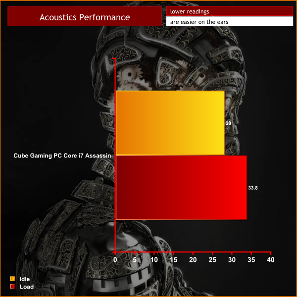 The Cube Gaming PC Core i7 Overclocked Assassin is one, if not the quietest high performance gaming systems we have tested in the last 24 months. When idle it is basically silent and under load it is barely audible, even from only 1 meter away.