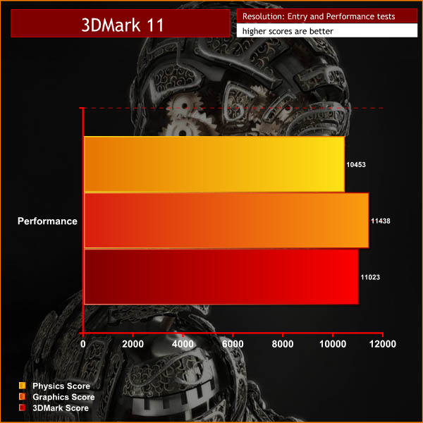 Excellent scores in Futuremark's last generation Direct X 11 benchmark, scoring 11,023 points.
