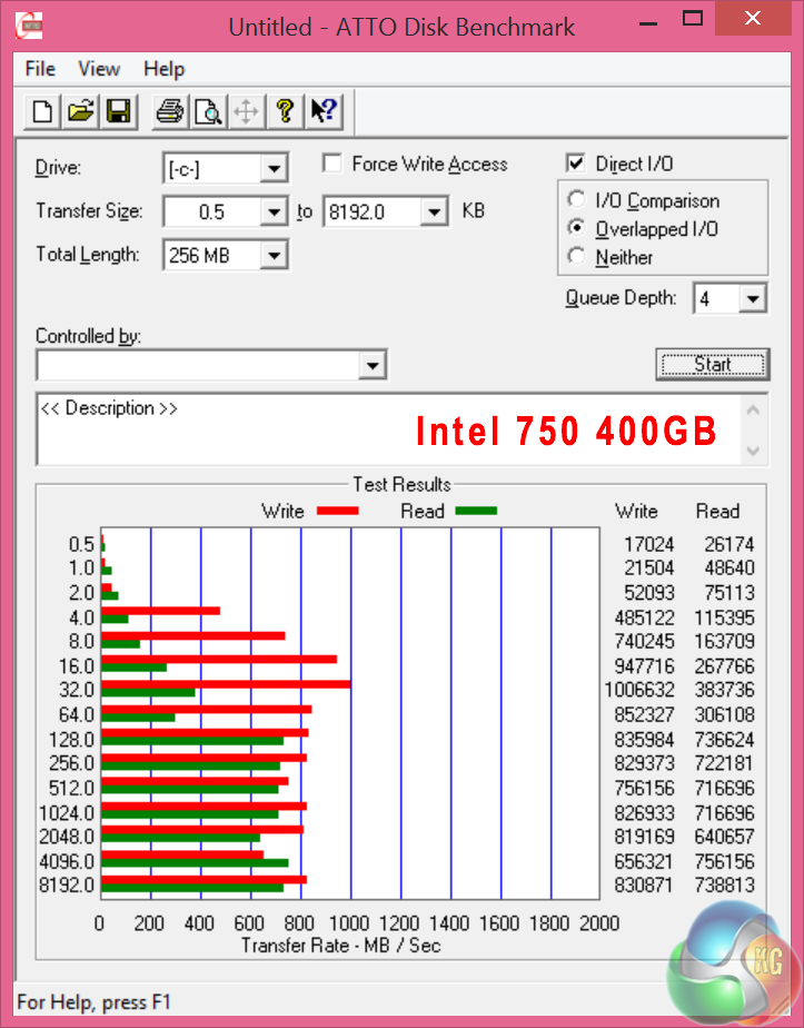 We set the BIOS to run in the UEFI mode and changed the PCIe slot Configuration from AUTO to GEN3 – forcing the system to use the maximum available bandwidth. The results increased to around 2,100MBps/900 MBps which seems more in line with what we would expect. If you own this board we would recommend you change this setting from AUTO (which seems to setting a GEN1 for the Intel 750) as shown above.