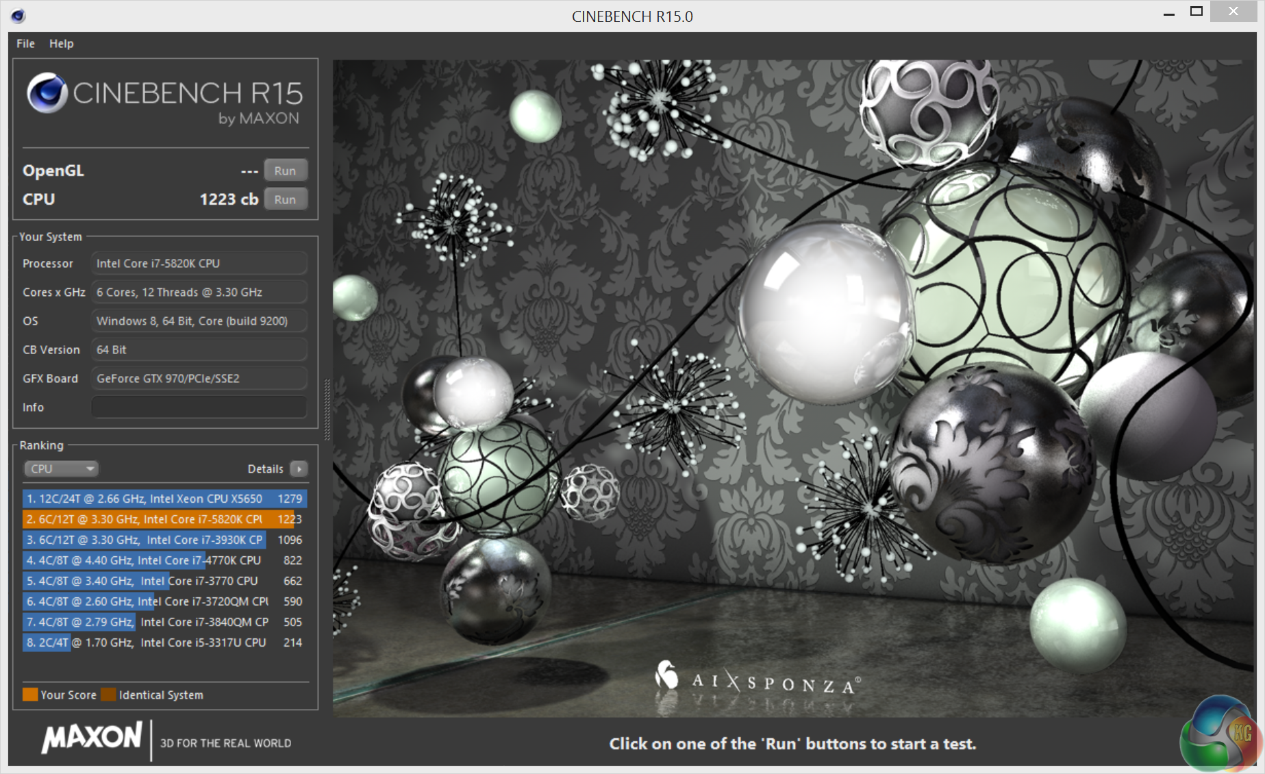 The overclocked 5820k scores 1,233 points – indicating great performance for 3D rendering duties.