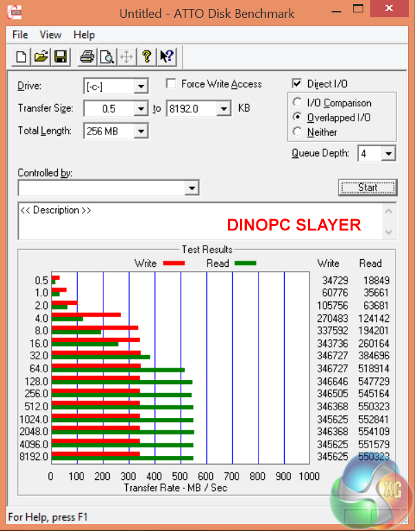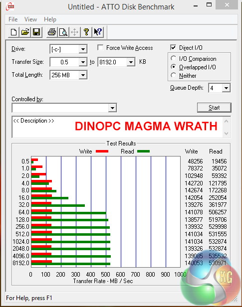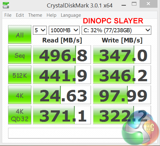 We analyse the Solid State drives in both machines with Crystaldiskmark and ATTO.