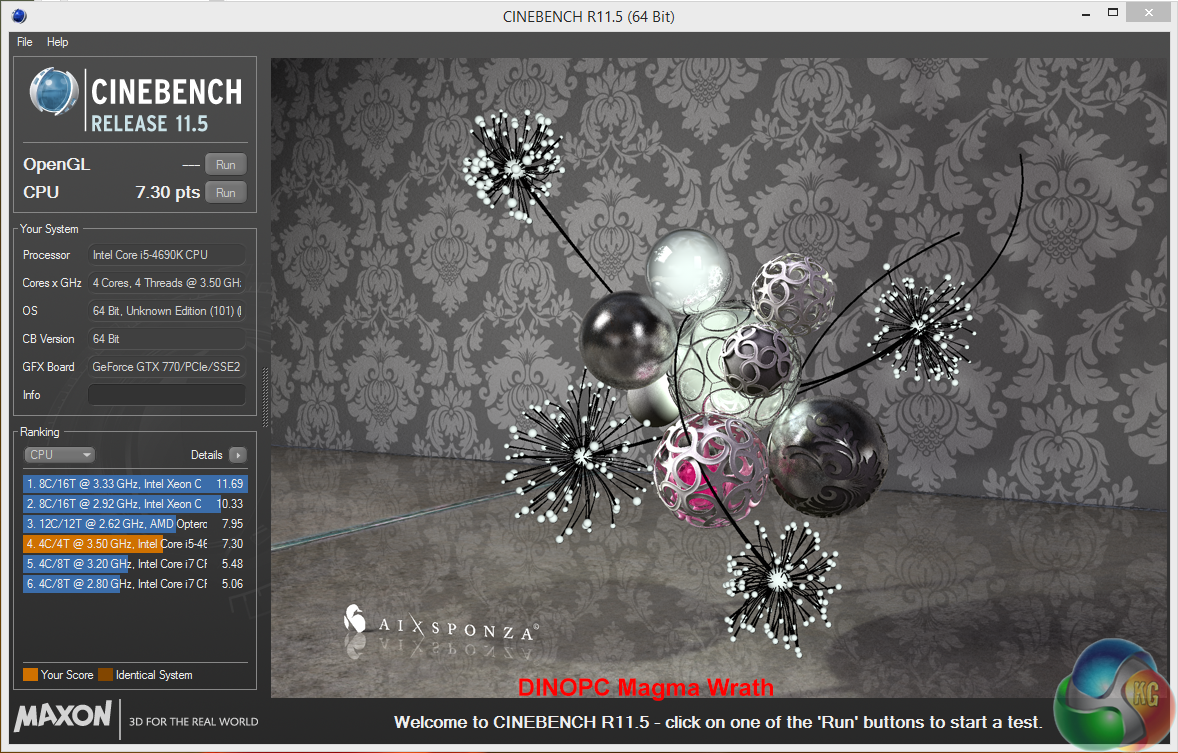 CINEBENCH R11.5 64 Bit is a real-world cross platform test suite that evaluates your computer’s performance capabilities. CINEBENCH is based on MAXON’s award-winning animation software CINEMA 4D, which is used extensively by studios and production houses worldwide for 3D content creation. MAXON software has been used in blockbuster movies such as Spider-Man, Star Wars, The Chronicles of Narnia and many more. CINEBENCH is the perfect tool to compare CPU and graphics performance across various systems and platforms (Windows and Mac OS X). And best of all: It’s completely free.