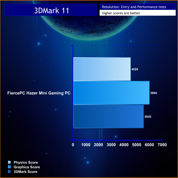 3DMark 11 is designed for testing DirectX 11 hardware running on Windows 7 and Windows Vista the benchmark includes six all new benchmark tests that make extensive use of all the new features in DirectX 11 including tessellation, compute shaders and multi-threading. After running the tests 3DMark gives your system a score with larger numbers indicating better performance. Trusted by gamers worldwide to give accurate and unbiased results, 3DMark 11 is the best way to test DirectX 11 under game-like loads.If you want to learn more about this benchmark, or to buy it yourself, head over to this page.