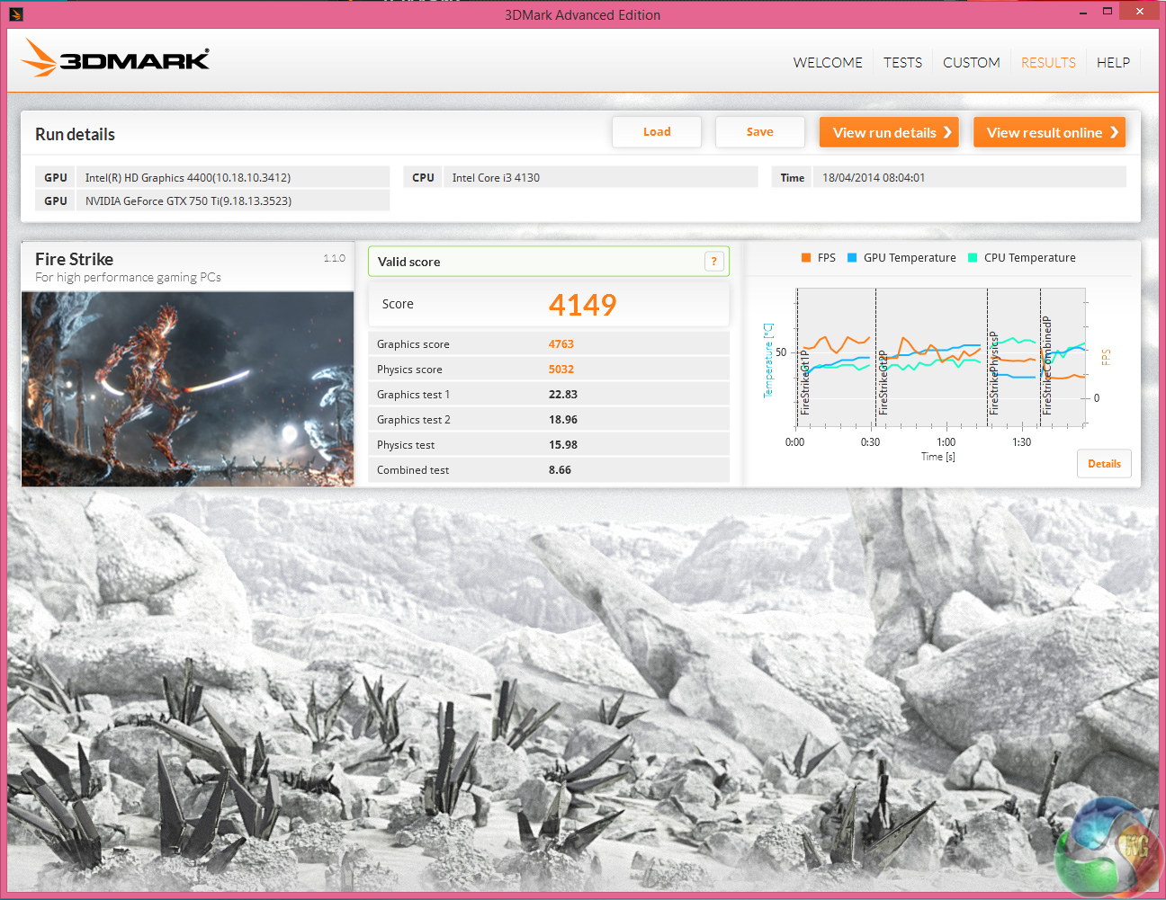 Futuremark say “Use it to test your PC’s limits and measure the impact of overclocking and tweaking your system. Search our massive results database and see how your PC compares or just admire the graphics and wonder why all PC games don’t look this good.