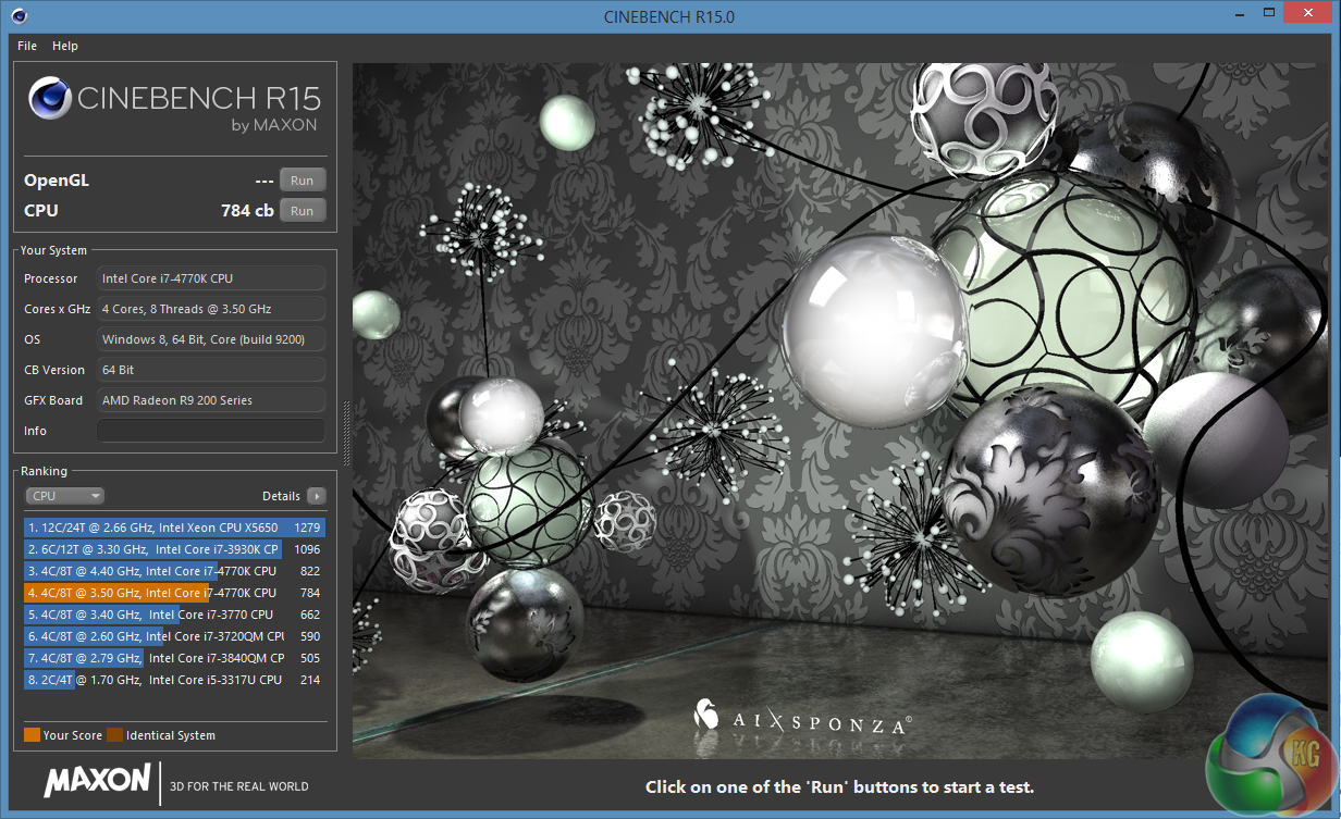 CINEBENCH 15 is a cross-platform testing suite that measures hardware performance and is the de facto standard benchmarking tool for leading companies and trade journals for conducting real-world hardware performance tests. With the new Release 15, systems with up to 256 threads can be tested. CINEBENCH is available for both Windows and OS X and is used by almost all hardware manufacturers and trade journals for comparing CPUs and graphics cards.