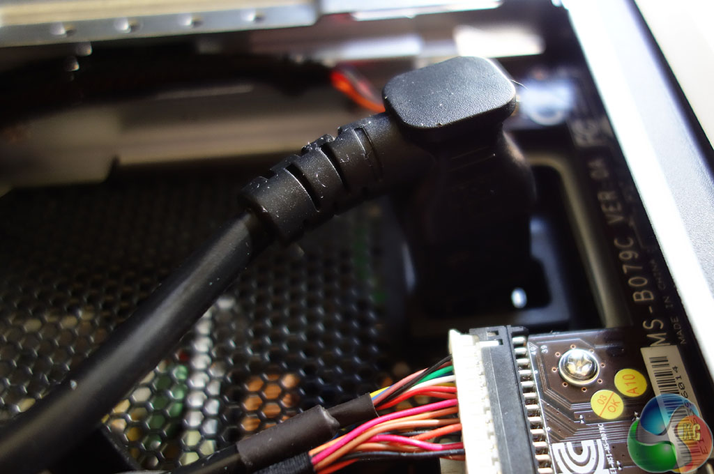 A power supply extension cable runs from the top section at the back of the Nightblade chassis into the power supply at the front.