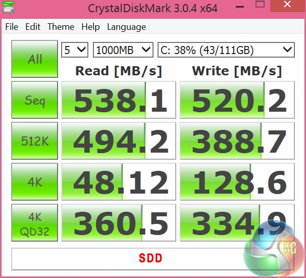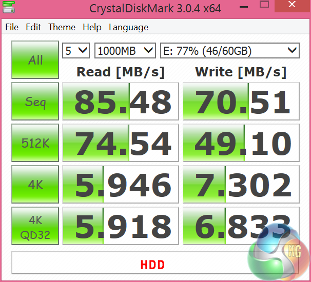 Crystalmark is a useful benchmark to measure theoretical performance levels of hard drives and SSD’s. We are using V3.0.3. We test the Solid State Drive and the mechanical drive.