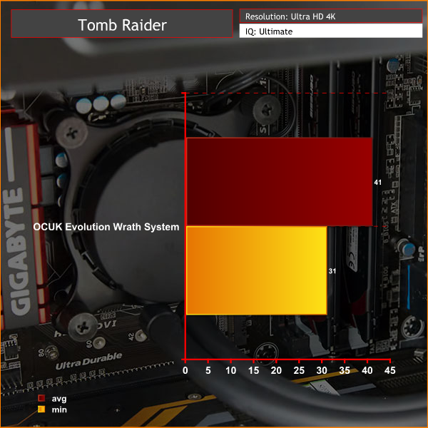 Ultra HD 4K is a demanding resolution, and it is even more so due to the highest image quality settings we have selected. Dropping the image quality a little to ULTRA settings would help improve the minimum frame rate significantly.
