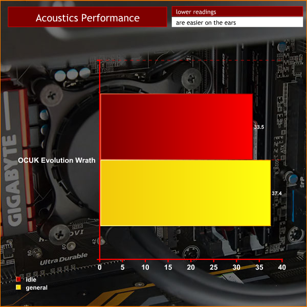 The OCUK Evolution Wrath is generally inaudible, it is only under heavy extended load that the fans on the GPU and CPU spin up. Even at full load, it is never too intrusive. Certainly not a ‘silent' system build, but the noise levels are generally very modest.