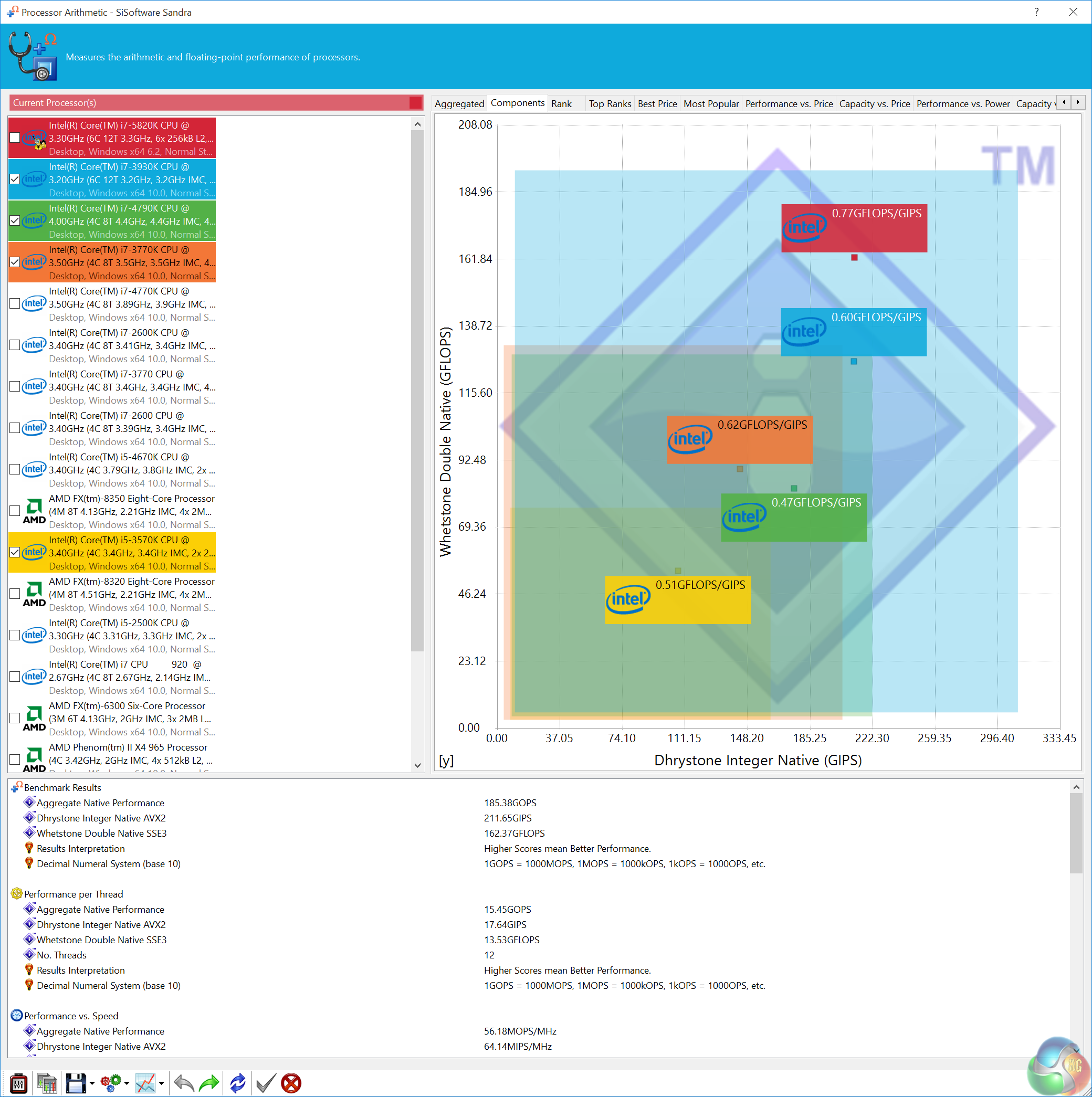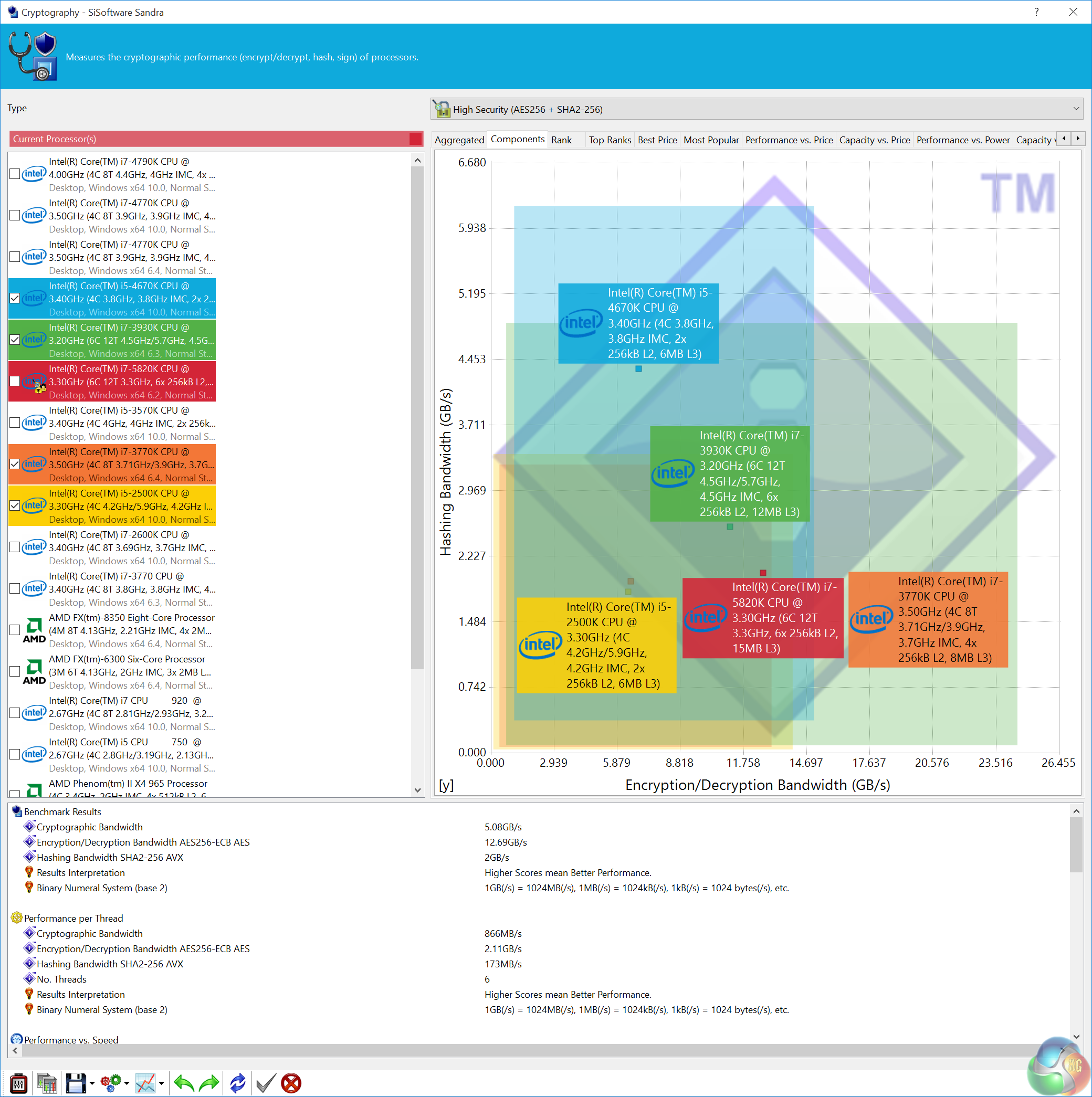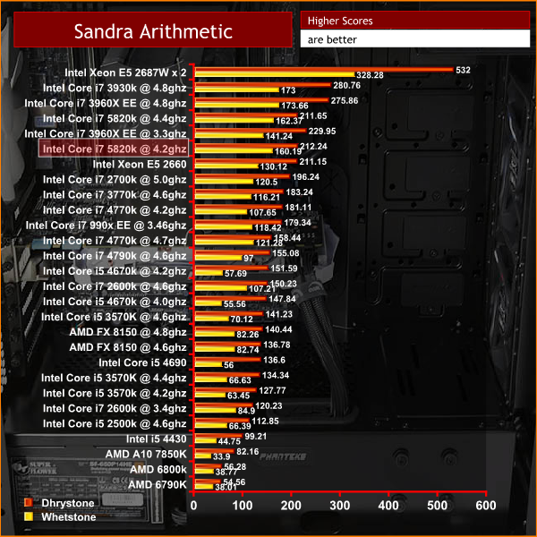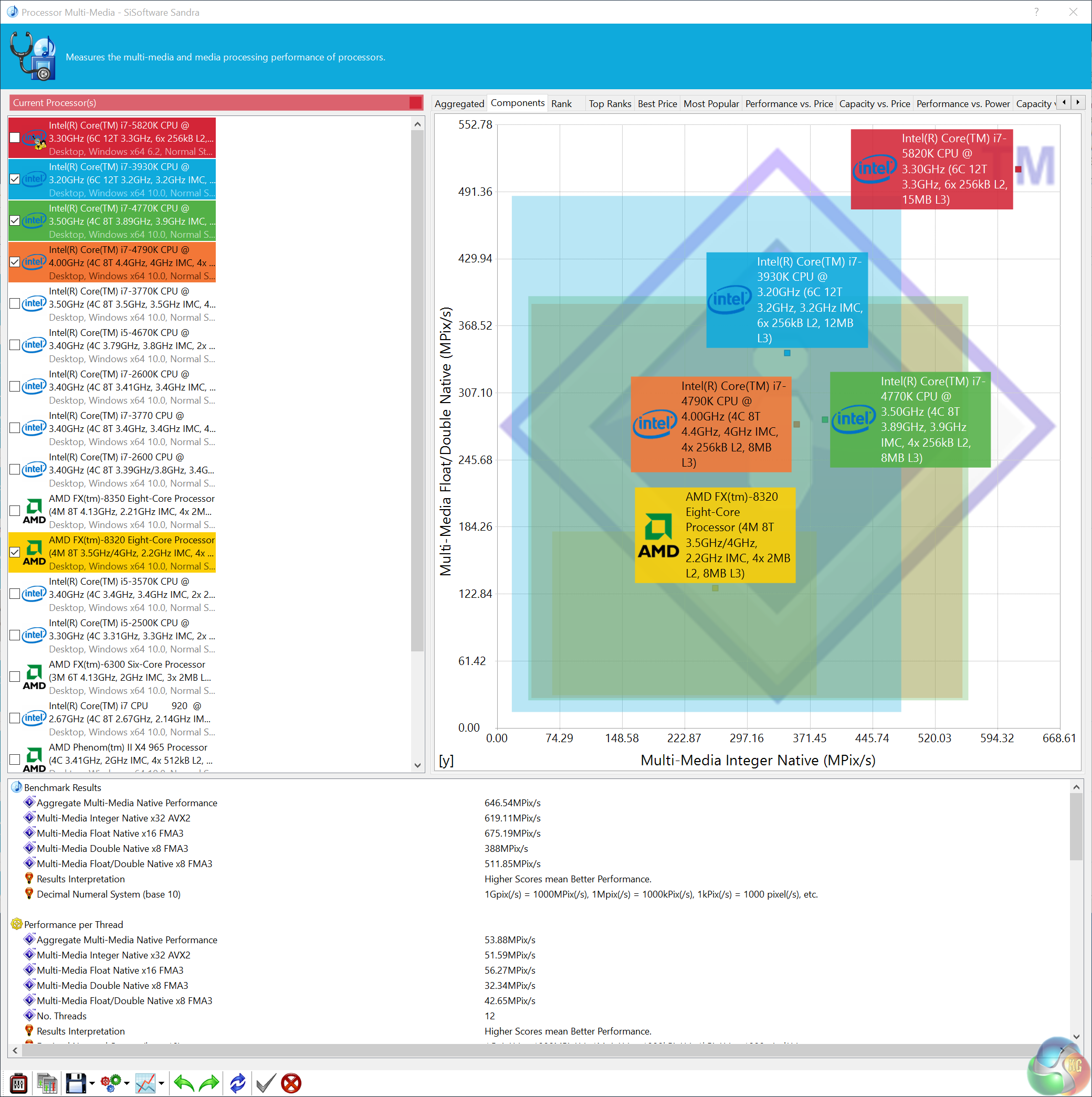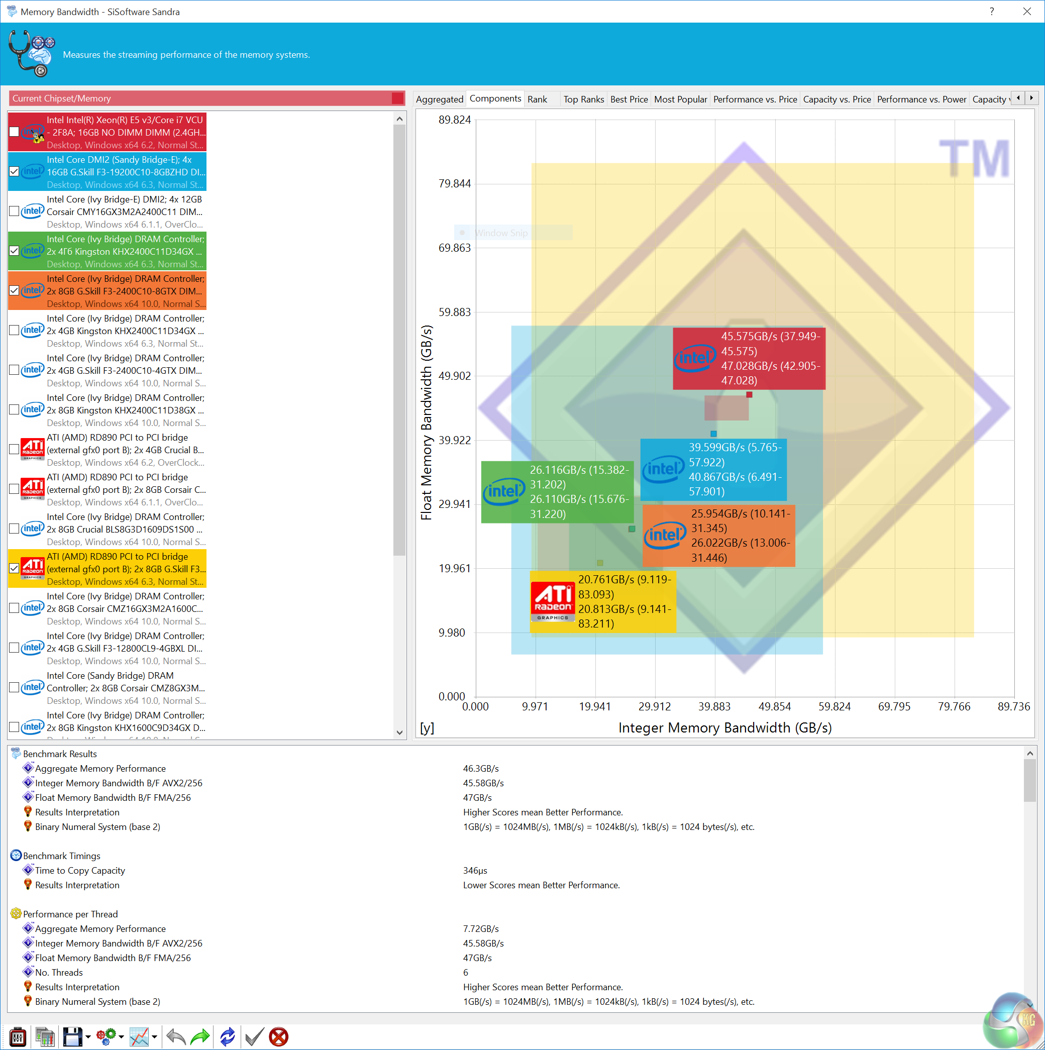 The overclocked Core i7 5820k scores as we would expect – aided by the overclock to 4.2ghz. The quad channel memory scores well, around 45GB/s.
