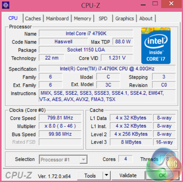 Processor: i7-4770K Quad Core Processor (3.5GHz, 8MB Cache) @ 4.2ghz.
