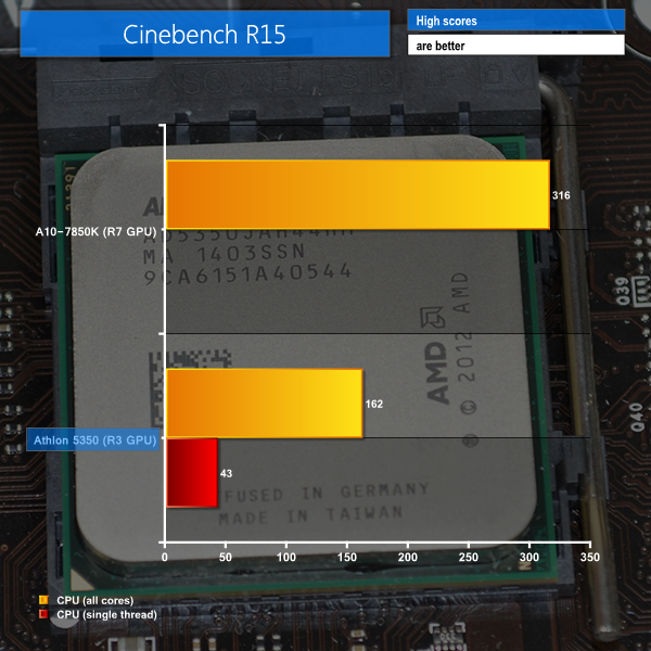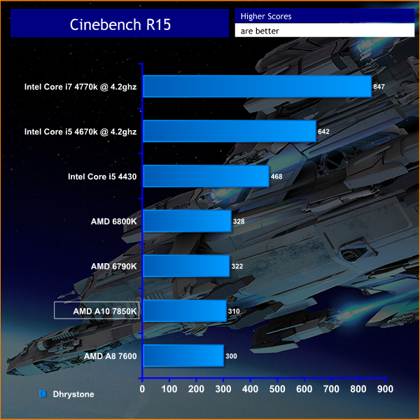 CPU performance is better than the A8 7600, but a little less than the 5790K, scoring 310 points.
