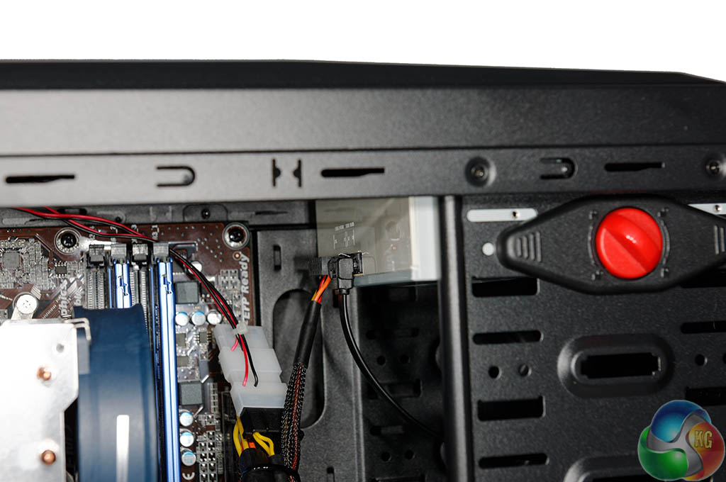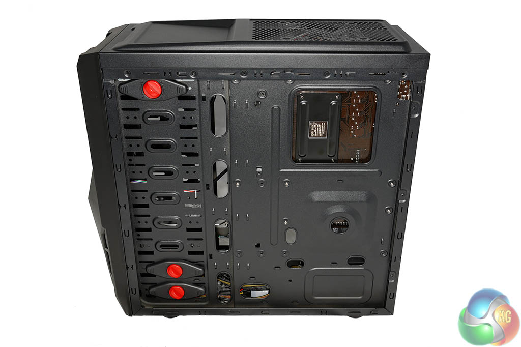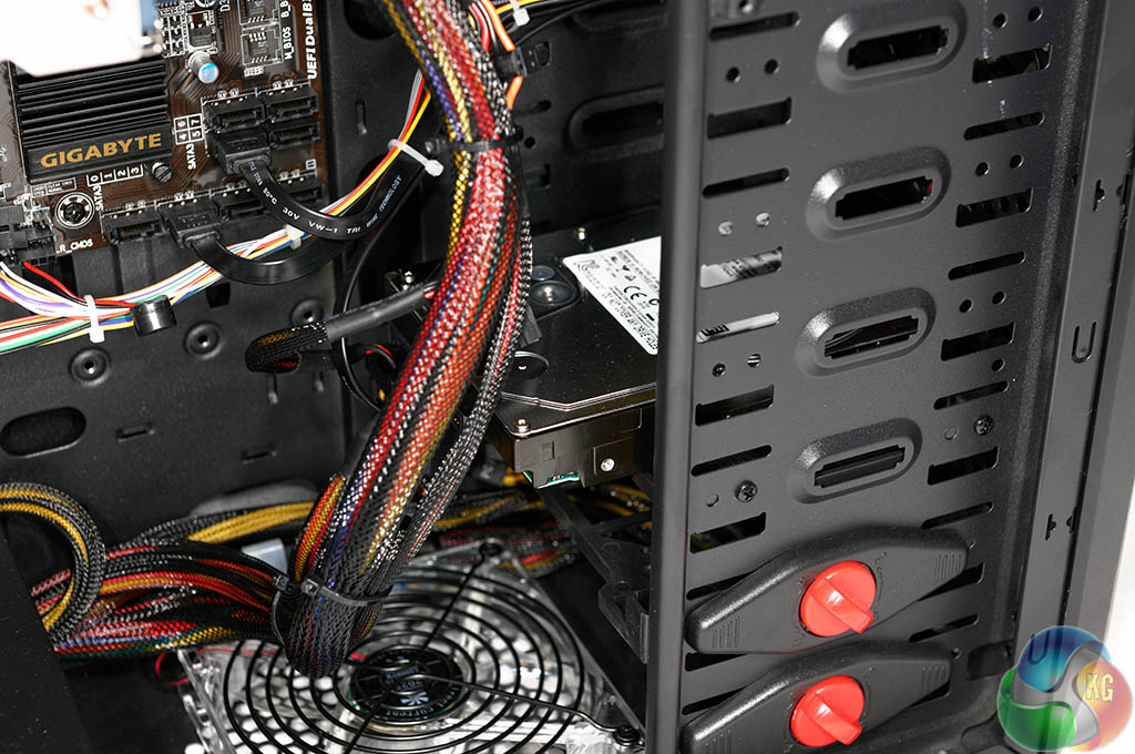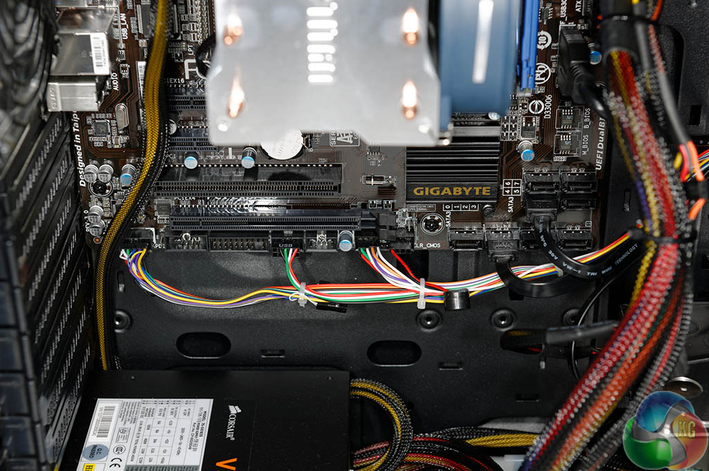 The internal build is clean although there are not a lot of cable routing holes in the motherboard panel. This has forced a lot of the cables to be in plain view, just above the bottom mounted case fan and behind the hard drive.