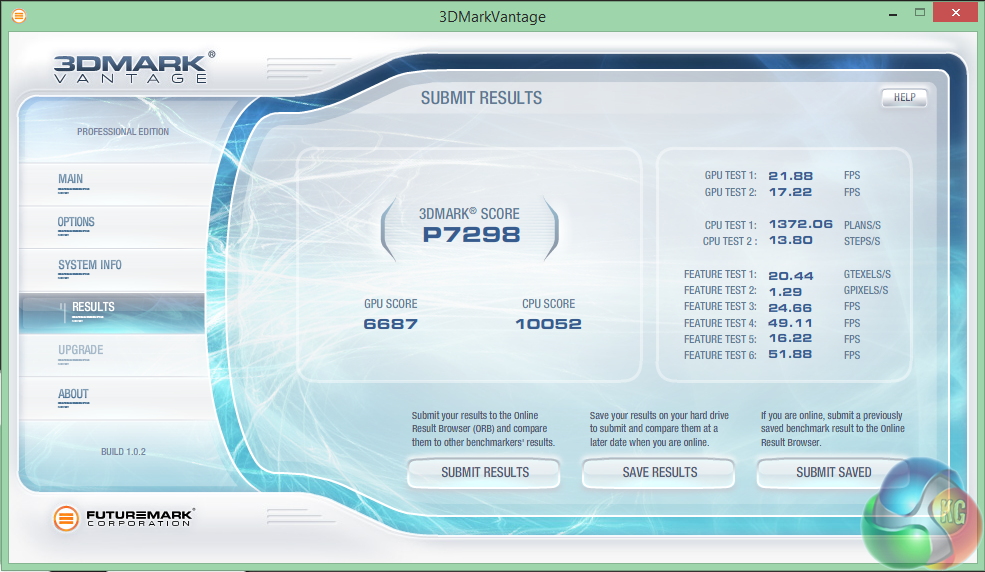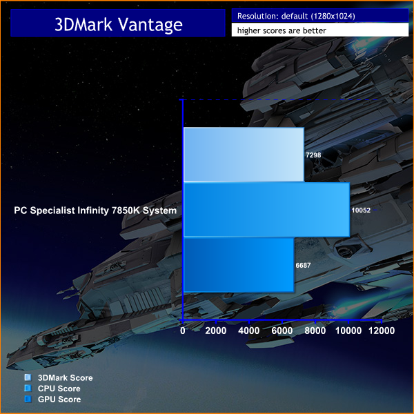 Futuremark released 3DMark Vantage, on April 28, 2008. It is a benchmark based upon DirectX 10, and therefore will only run under Windows Vista (Service Pack 1 is stated as a requirement) and Windows 7. This is the first edition where the feature-restricted, free of charge version could not be used any number of times. 1280×1024 resolution was used with performance settings.