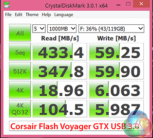USB 3.0 Performance is as good as we have seen – hitting a maximum read speed of 433MB/s.