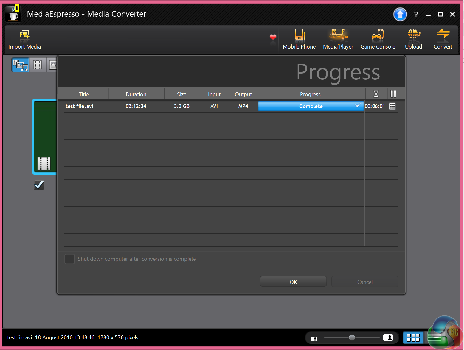 For our testing today we are converting a 3.3GB 720p MKV file (2h:12mins) to Apple Mp4 format for playback on a portable device. This is a common procedure for many people and will give a good indication of system power. We are using the newest version which has been optimised for Sandybridge processors.