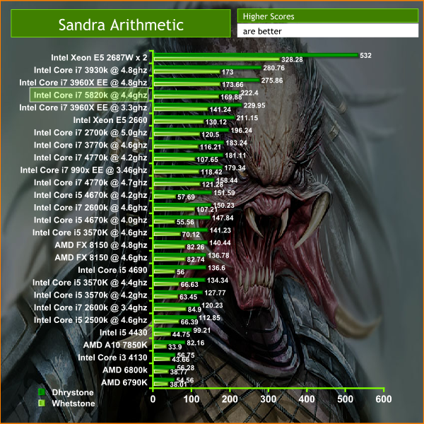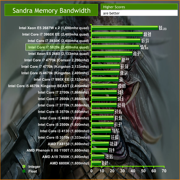 Overall system performance, as we would expect is exceptionally high. The overclocked Core i7 5820k delivers performance levels well in advance of a 4770k thanks to the two extra cores. The DDR4 memory delivers around 46GB/s of bandwidth.