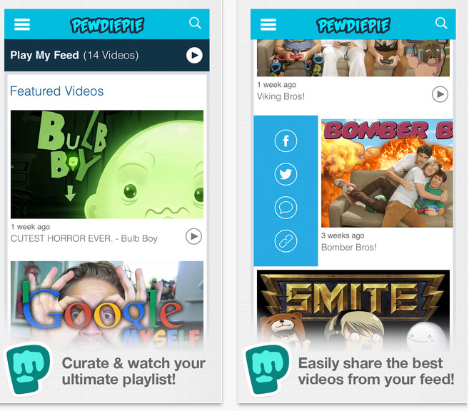 Developed in conjunction with Maker Studios, the promotional platform he's signed to that's now owned by Disney, the app allows you to personalise your feed, to highlight only your favourite game series, or the most popular uploads. Maybe you prefer the montages and want those front and centre? Done.