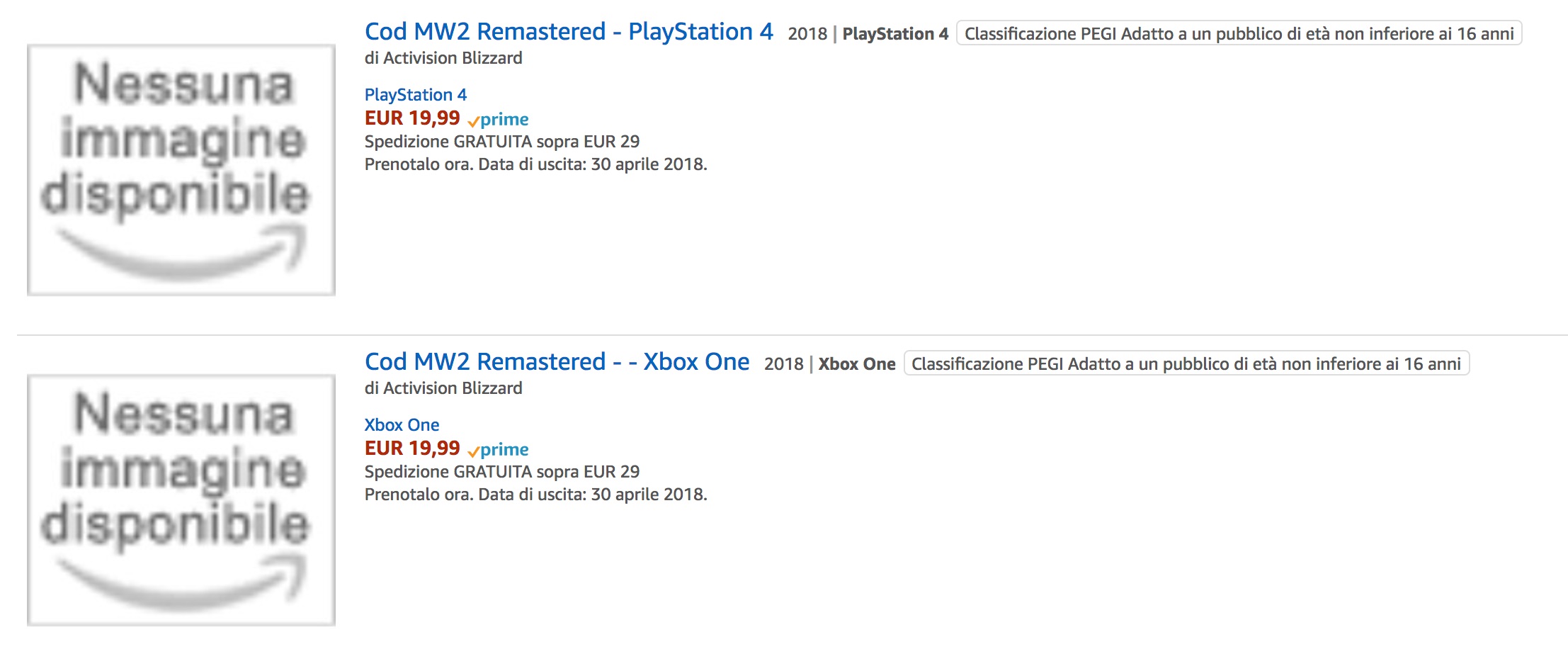 Amazon did the deed first, leaking a €19.99 (approx. $25) Call of Duty Modern Warfare 2 Remastered listing last week, with a release date pinned for 30th April 2018. Twitter users then got Best Buy to weigh in on situation, with the company replying “At this time we are unsure of when pre-orders for the new Modern Warfare 2 Remastered will begin.”