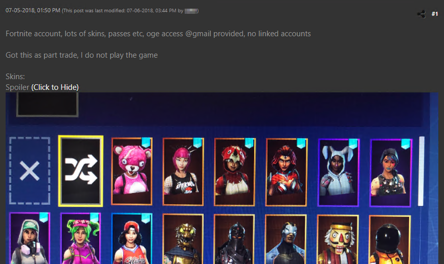 Cybercrime is nothing new in video games, with perpetrators often utilising the most popular titles to do their dirty work. Over the past decade, Blizzard’s World of Warcraft has been a prime target of phishing scams, as has Dota 2 and even Fortnite itself. Multiple times. Cyber security specialists at Sixgill have been monitoring the deep and dark web (DDW), noting that surge in popularity of Fortnite has spurred on an entire ecosystem for criminal activity.