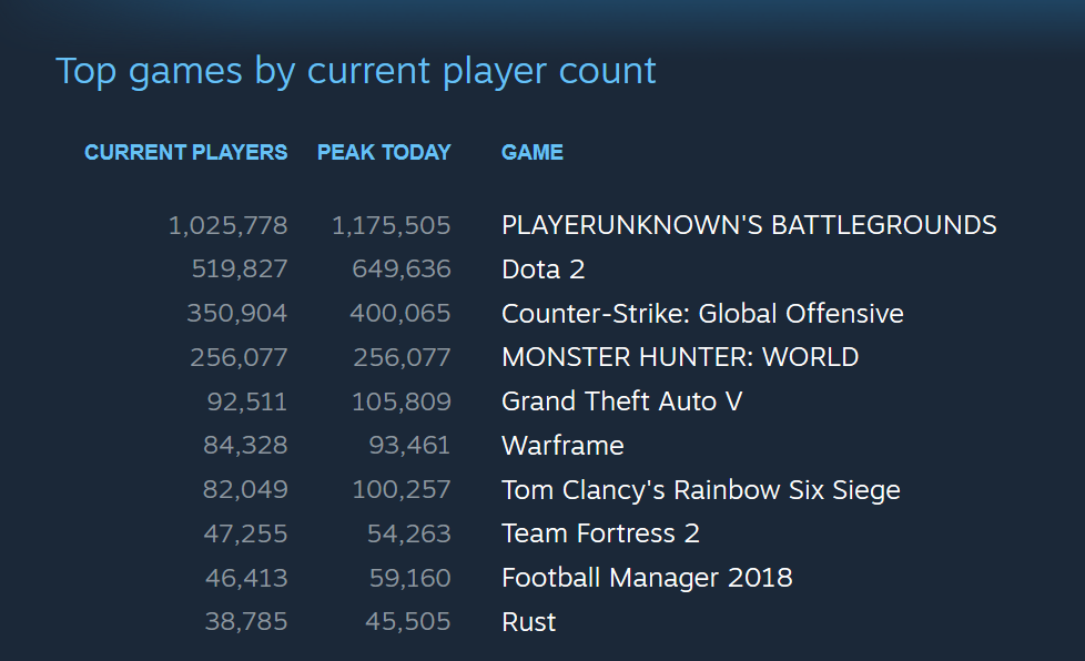 Just one day later, Monster Hunter World is continuously climbing in its concurrent player count, reaching 256,077 as of writing. This moves the title from 7th to 6th place, overtaking PayDay 2’s 247,628 set in June of last year. While it’s unlikely to overtake Grand Theft Auto V’s 360,761 all-time record, it shows that Capcom is certainly onto a winner despite its lack of investment in the PC platform prior.