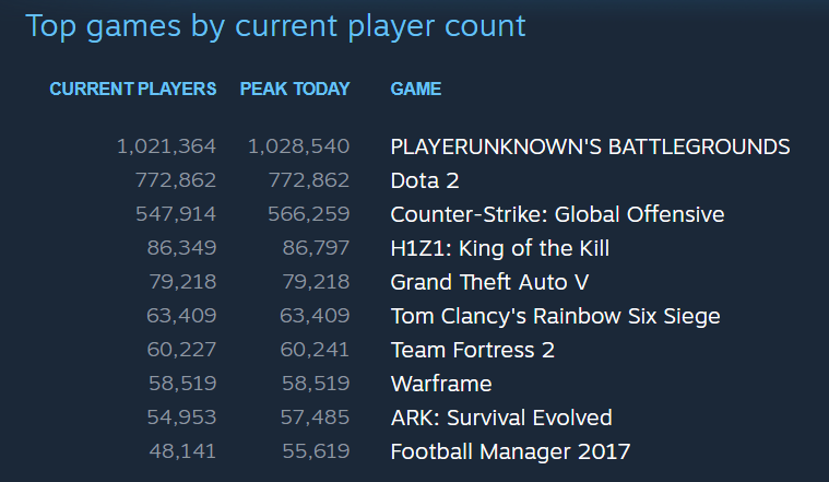 Yesterday, PlayerUnknown himself said that Battlegrounds could one day reach the potential 100 million overall users that League of Legends sports. The game is now one step closer, with PUBG breaking its first million concurrent players, which is amazingly close to breaking Dota 2’s record.