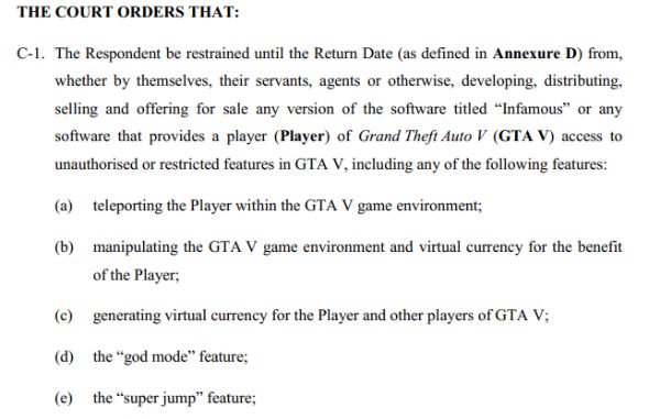 TorrentFreak reports that Rockstar and Take-Two filed a motion to take broad action against multiple members believed to be behind the “Infamous” cheat. This cheat in particular is known for teleportation, generating virtual currency, allowing players to super jump and enabling a God Mode for invulnerability.
