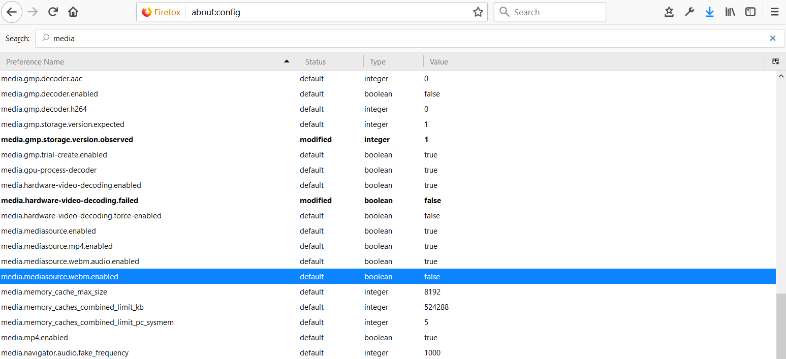 Firstly, users are instructed to open a new tab and place about:config in the address bar. A warning message appears after clicking enter, explaining that changing settings can be harmful but the process is simple enough to click “I accept the risk!” without worry. Next, type media into the search bar (not the address bar) and navigate to media.mediasource.webm.enabled. Double click or right click this option to ensure that it is enabled.