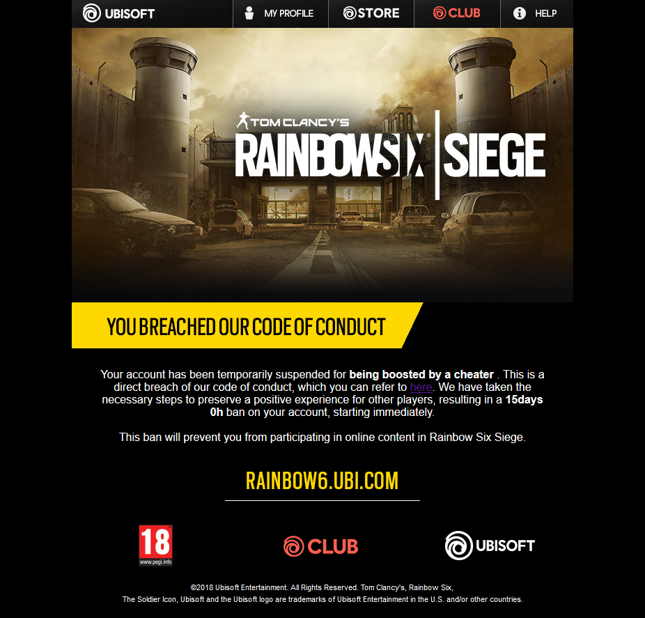 On January 23, 2019, I received my first ban in Rainbow Six Siege for supposedly being boosted by a cheater. This means that somewhere down the line, I have played a game alongside a cheater that has been caught by Ubisoft via anti-cheat systems such as BattlEye or FairFight and I’m being punished by proxy as it is assumed that I’ve knowingly endorsed this hacker or I’m abusing the system to climb the ranks.
