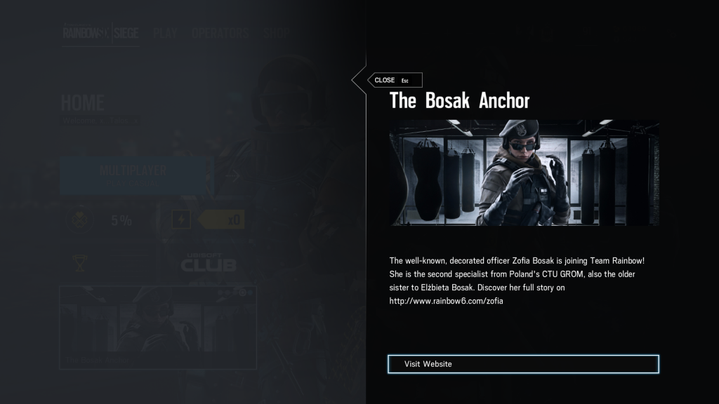 Fast forward a few months and Ubisoft has given us our first look at the remaining GROM operator, The Bosak Anchor. This first appeared on the main page of the game saying:
