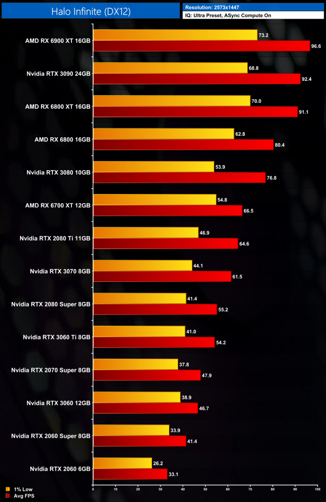 One key area to cover before we dive into the results themselves is why we tested the way we did. For our testing today, we’ve not benchmarked every single GPU on Ultra settings as we usually would. The reason for that is it quickly became apparent upon playing the game, that Halo Infinite is very heavy on the GPU and video memory.
