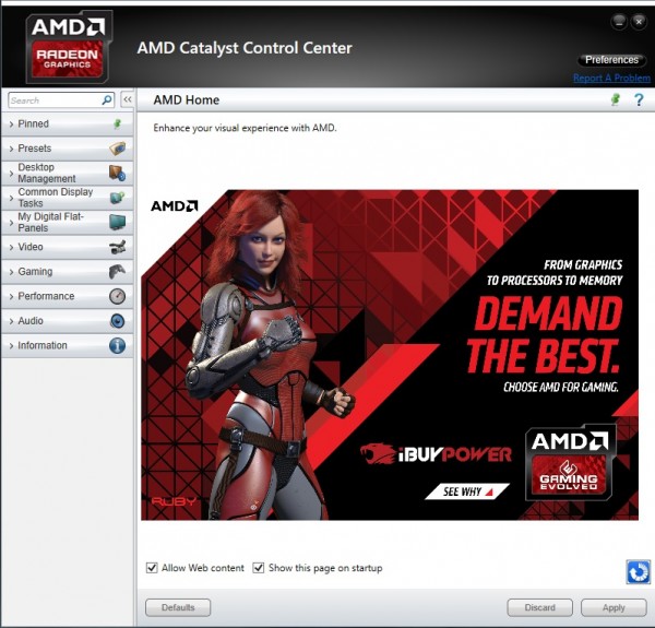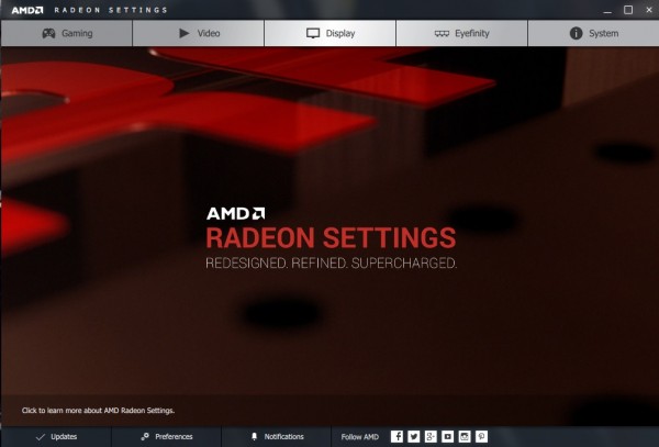 While the old Catalyst home page would serve you with an advert of some kind, the new Radeon Settings home page does away with that, which helps with quicker boot times. You can also see that the amount of tabs available to click though has been significantly cut down in order to present a cleaner UI.